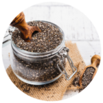 Sementes ricas em fibras e ômega-3 que promovem saciedade, digestão saudável e suporte ao emagrecimento.