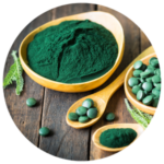Microalga rica em nutrientes que ajuda na desintoxicação natural do organismo, contribuindo para eliminar toxinas e apoiar o metabolismo saudável.